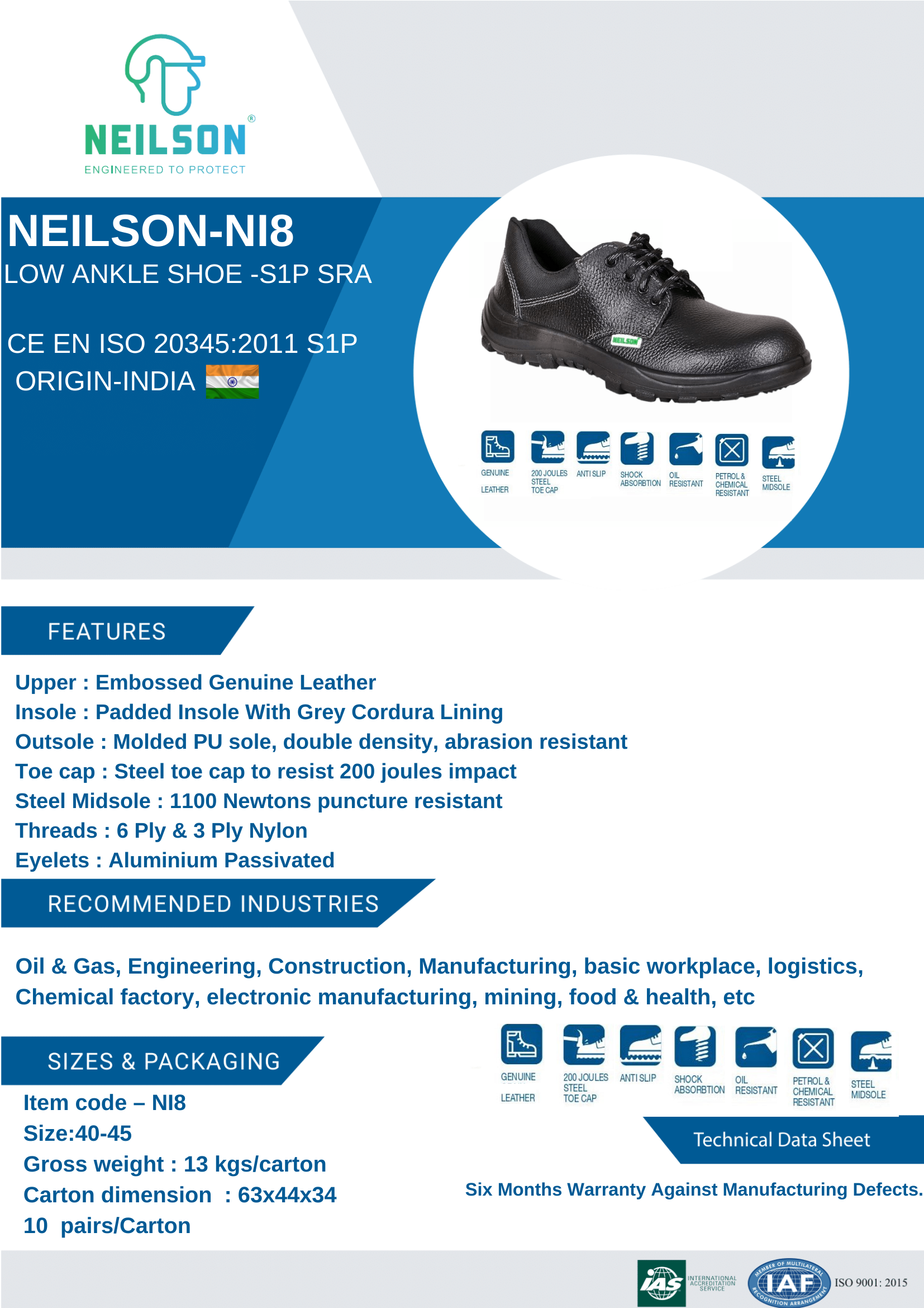 OUTSOLE: Heavy Duty Double Density Black/Grey PU Sole With 200 Joules Broad Steel Toe Cap & 1100 Newtons Flexible Steel Plate, Oil Resistant, Anti slip, Energy Absorbing Heels, Abrasion and Penetration Resistant.