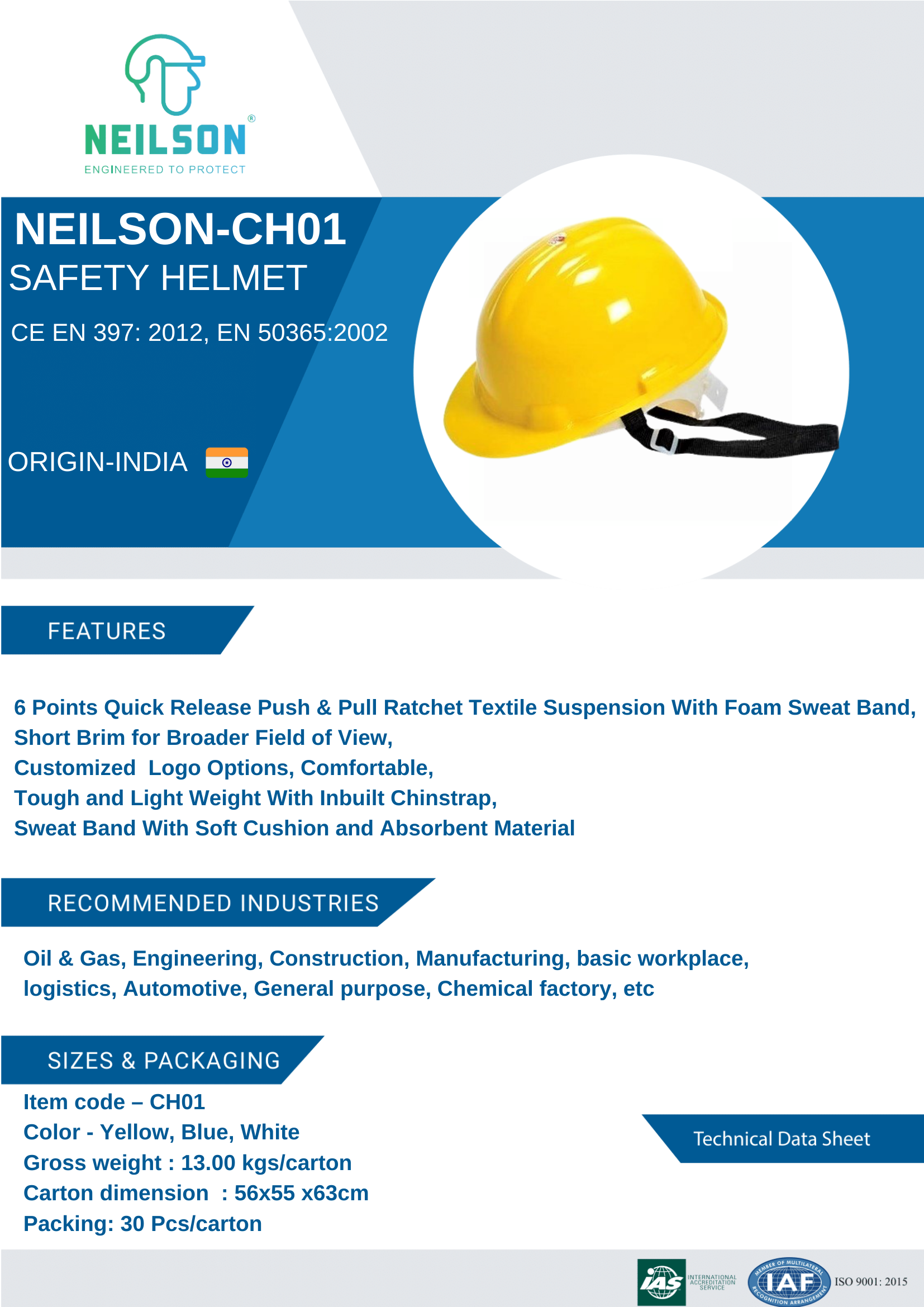 FEATURES: 6 Points Pin Lock Textile Suspension with Foam Sweat Band, Short Brim for Broader Field of View, Customized Logo Options, Comfortable, Tough and Light Weight with Inbuilt Chinstrap.